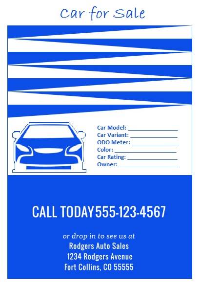 Making a car sales flyer template where you can include everything in your own words is a simple yet effective tool. Being a very meaningful method, it is obviously a better option to advertise used cars. Moreover, there are other techniques or methods through which an individual can advertise his or her car. For instance, sign-boards, posters, multimedia and print media. Nevertheless, these methods are considered expensive tools. Therefore, with the help of a smart car sales flyer, you can target selected areas where you want to communicate with people who may wish to buy your car. No matter whether you are a vehicle dealer or individual who wants to sell a personal car, it is relevantly important to advertise your car ads in order to acquire more customers as well as making new potential clients.
