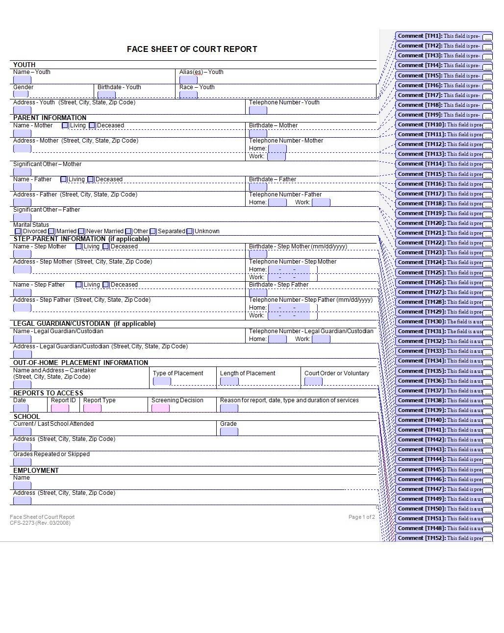 Details of Face Sheet Template: