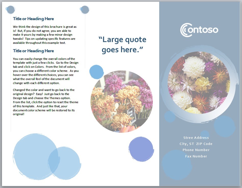 Free brochure templates are the best marketing tool which is used by businesses and other organizations. By using a brochure, business people can sum up all the important information about their products or services which their customers need to know. They can use an eye-capturing brochure format to quickly attract the attention of their customers. These free brochure templates may be a bi-fold or a tri-fold brochure, usually depending on the amount of information to be advertised. A brochure can easily promote business offers to potential customers. Make sure to use clear, precise and interesting language for the readers to attract their attention. Besides the offer, it must also contain information about the business like business address as well as contact information. Being a marking tool, a brochure can also be defined as a booklet that is close to the pamphlet, but it’s the modern appearance of a pamphlet which consists of a magazine prepared by people who want to convey information about their products or services in a specialized manner.