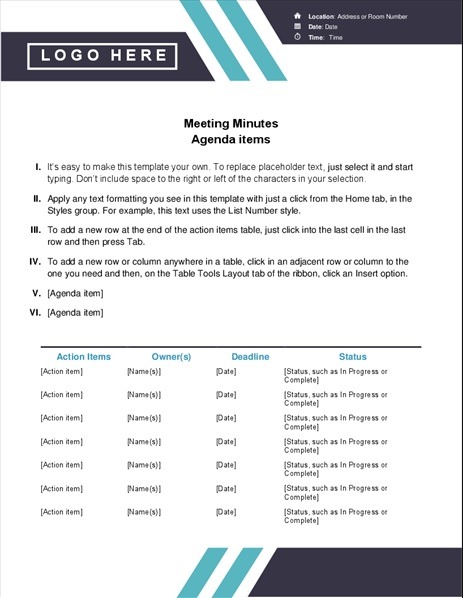 Ease of Use: A professional meeting minutes format comes with a lot of editing options. Any employee of management with not much understanding of software like MS Word, can easily edit them. This is the comfort which a professional can provide. Moreover, they offer multiple designs for the same layout, which will help management to maintain their elegant look.