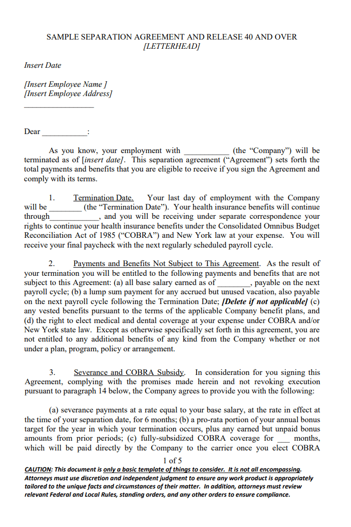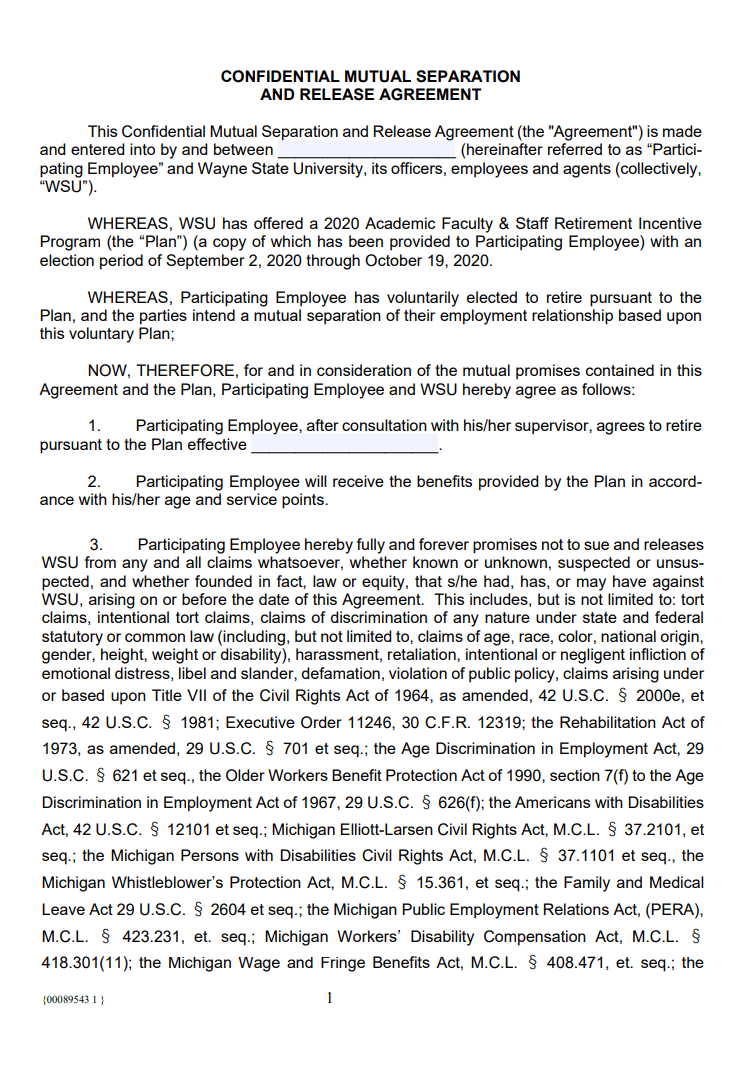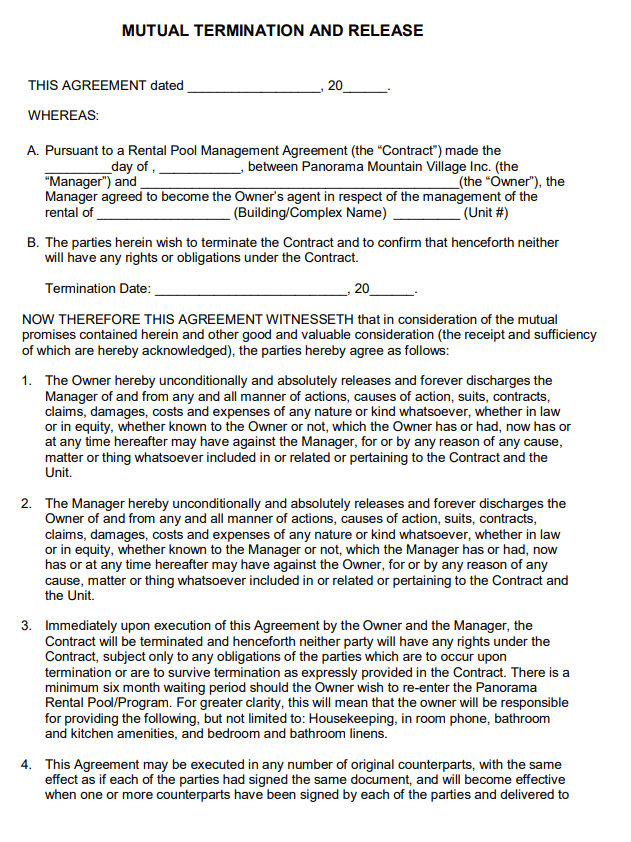 Details of Mutual Separation Contract Template: