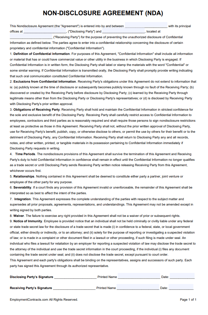 1- The non-disclosure agreement makes sure that all concerned parties get clear about what information is confidential of one party, and how the receiving party will keep it private from other unauthorized individuals, or parties.